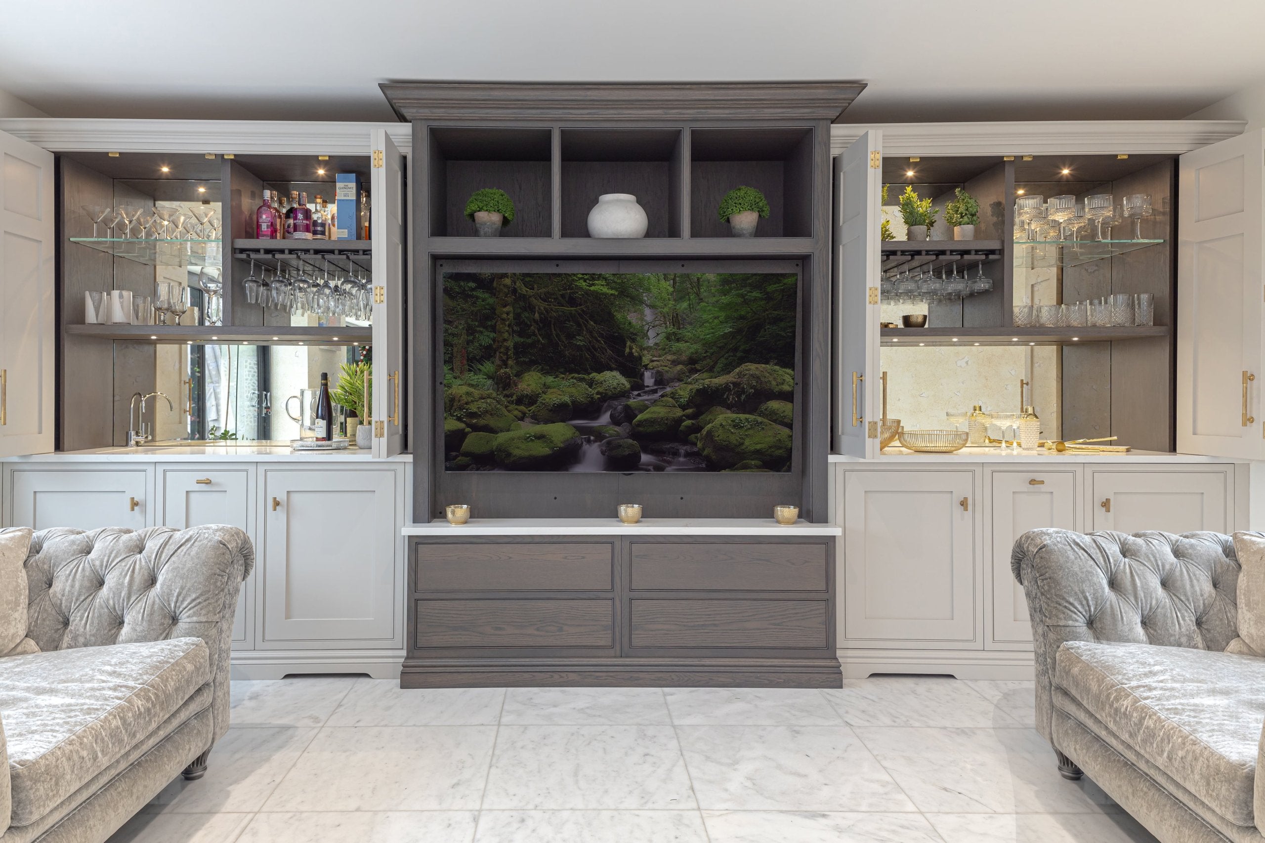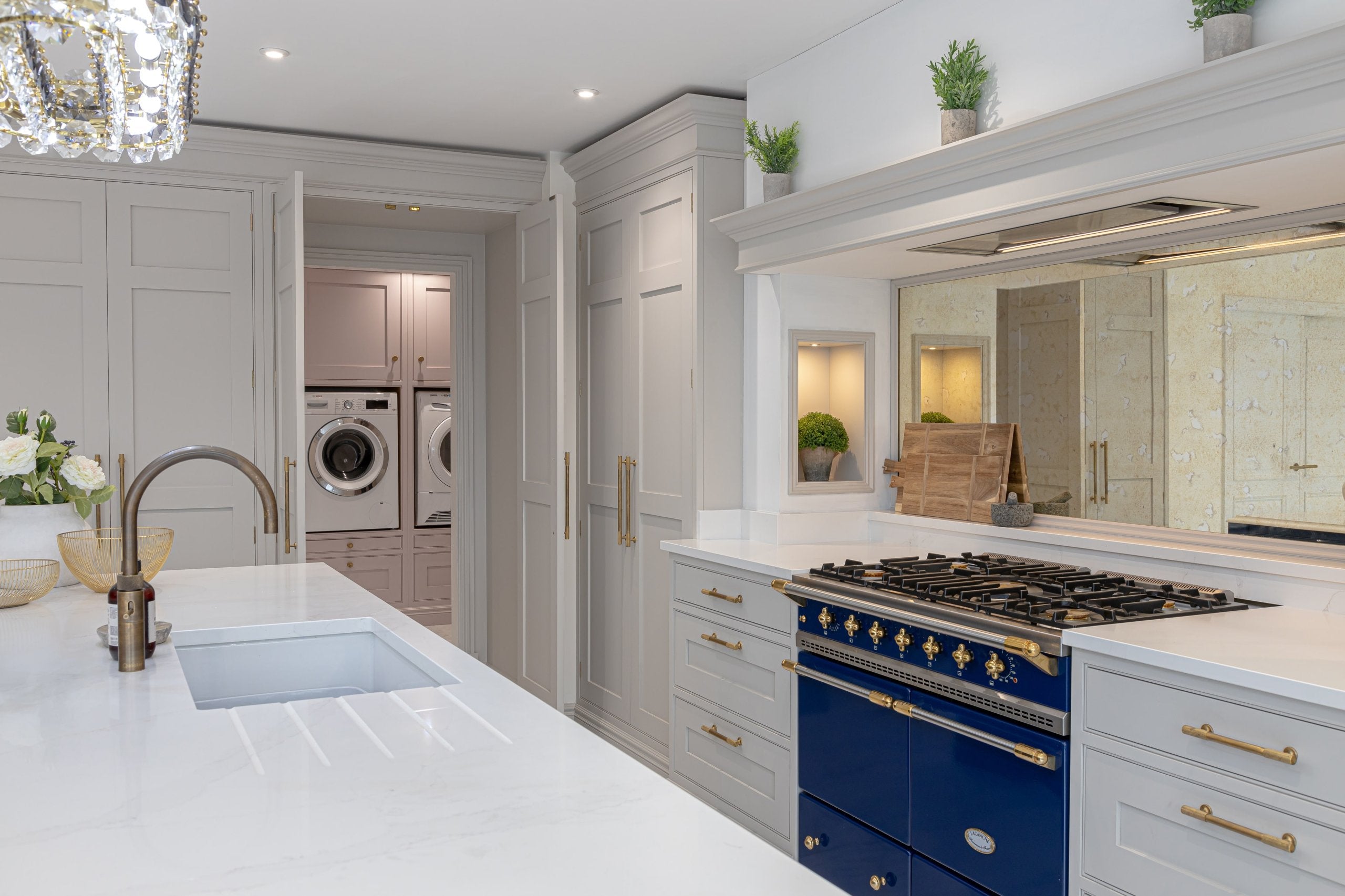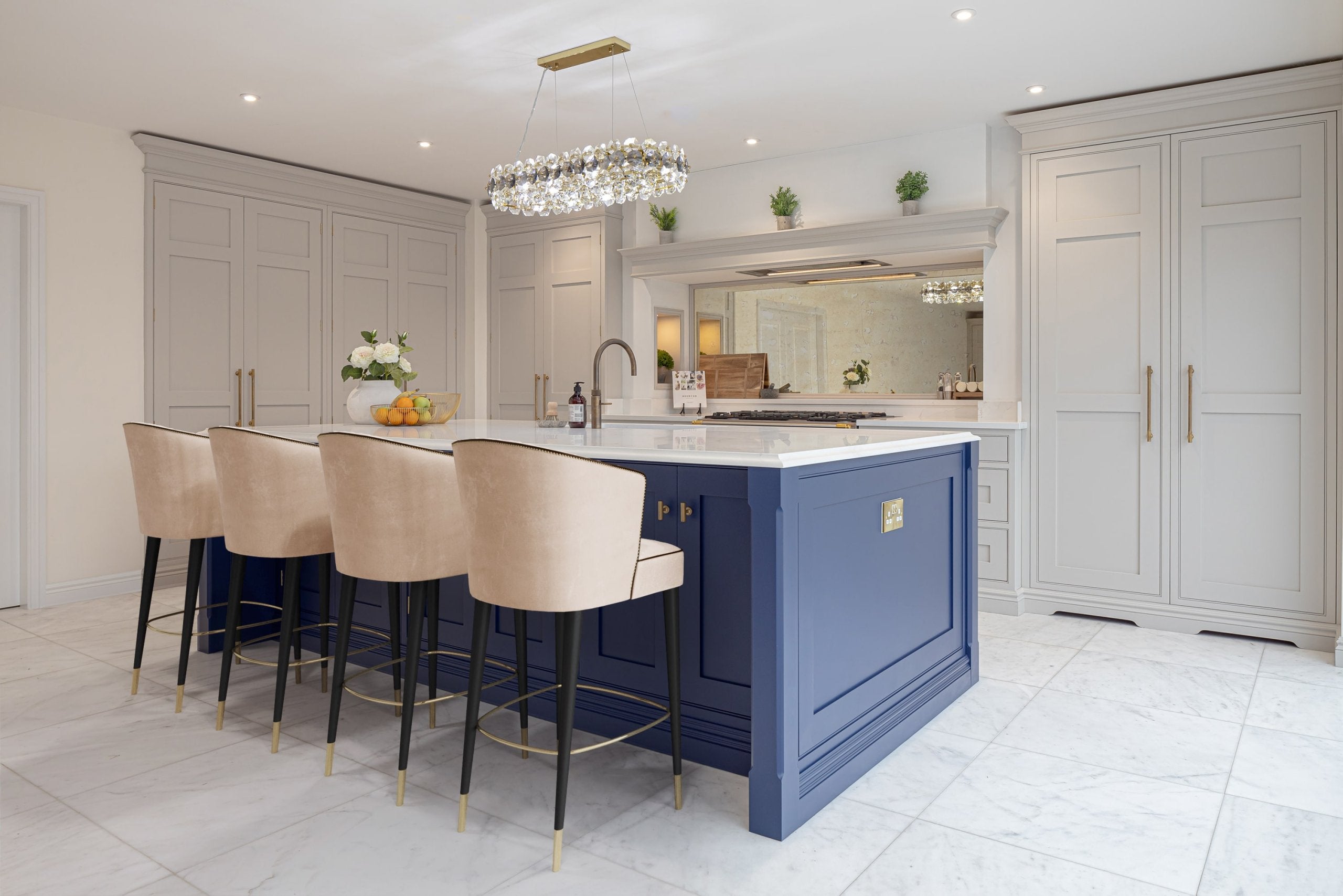 The Astoria Rectangular Chandelier, takes centre stage in the heart of this award-winning luxury kitchen. Recognised by the UK Property Awards.