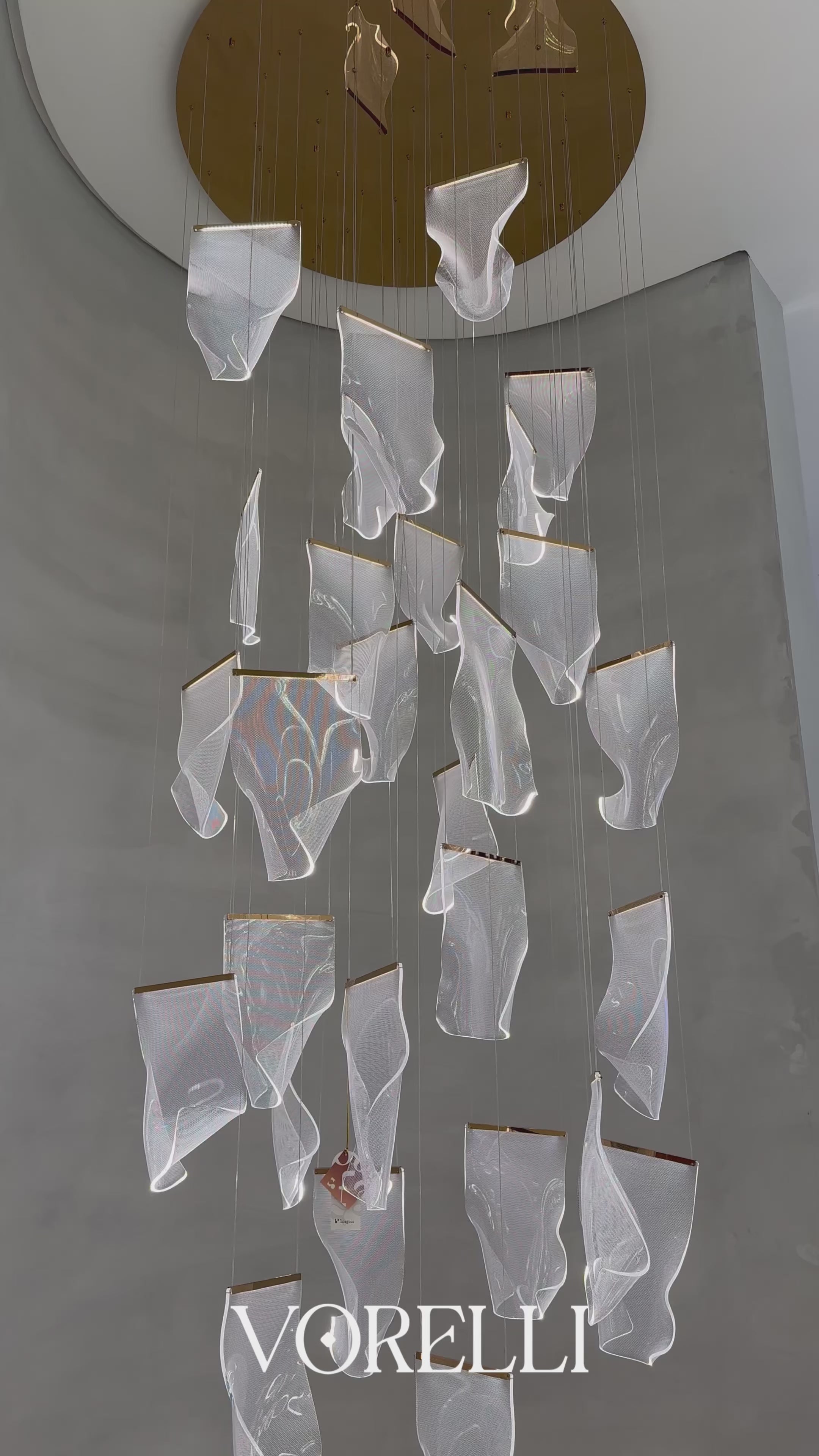 Flowing acrylic pendants illuminated by built-in LED chip technology, this piece creates a captivating, modern aesthetic. The free-fall formation brings an artistic, contemporary vibe to any space, adding a sense of movement and uniqueness. Ideal for high-end interiors, this chandelier exudes creativity and elegance.