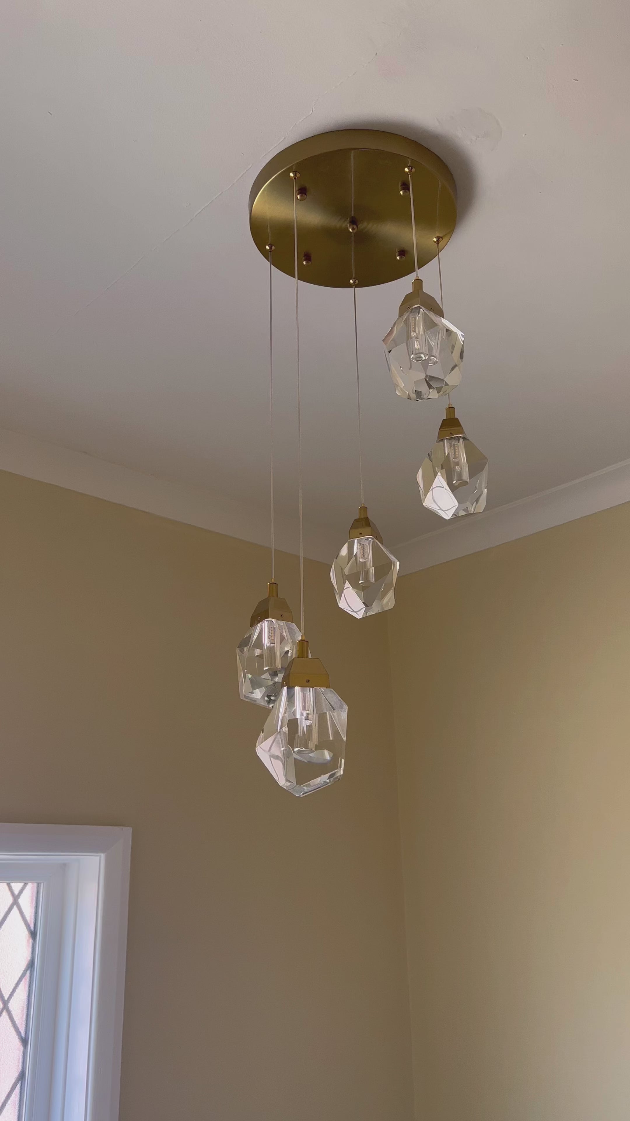 Diamond cut crystal sphere pendants that cascade elegantly from the ceiling plate, creating a stunning visual effect. Inspired by luxurious design, this chandelier enhances any grand staircase or entryway with its dazzling beauty and sophisticated ambiance.