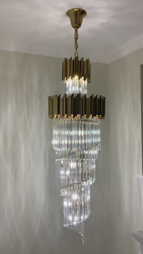 A distinctive two-tier design, combining differentiated cuboid tubing with exquisite crystal bars. Inspired by the classical beauty of the Boeotia region, this chandelier creates a captivating focal point with its elegant spiral form and contemporary sophistication.